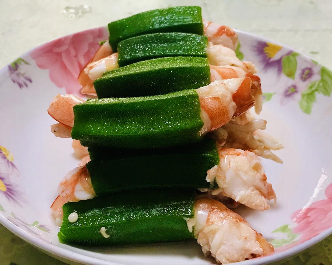 秋葵塞个虾,荤素健康补钙佳。