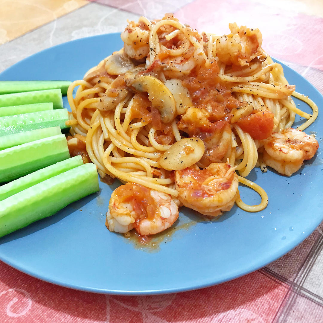 鲜虾口蘑意面
