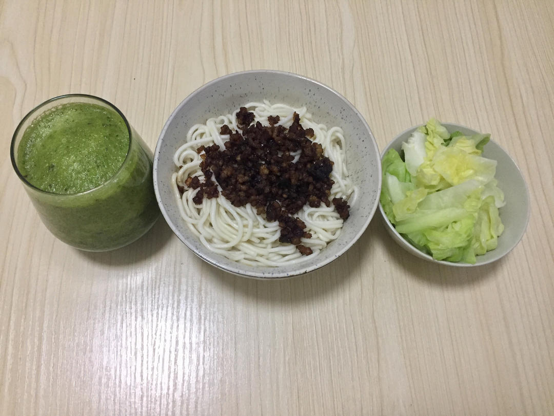 羽衣甘蓝花牛苹果汁/素椒杂酱面/白灼京包菜