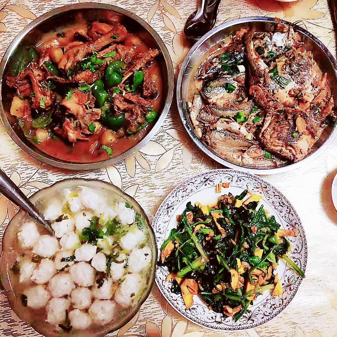 墨鱼丸汤+清炒苦+土豆炖笨鸡+闷鲅鱼