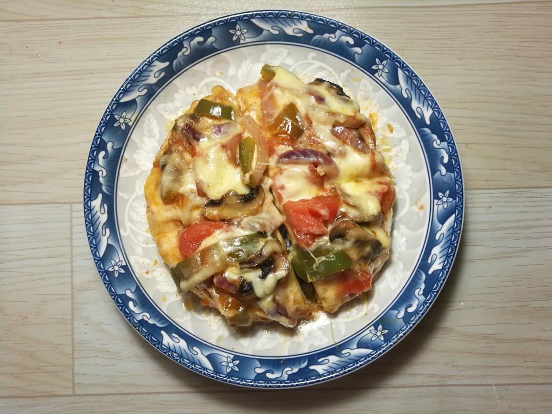 快手时蔬口蘑披萨,无拉丝不披萨。