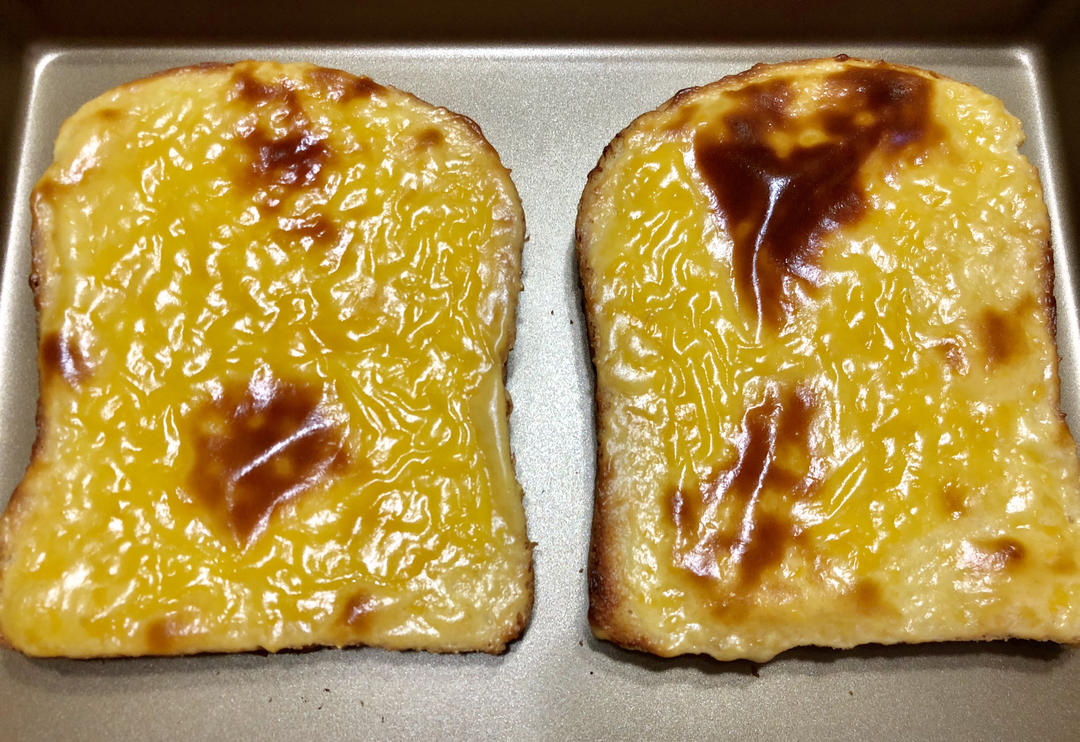 早餐:岩烧乳酪吐司。面包机烤的吐司,加工一下,好吃。