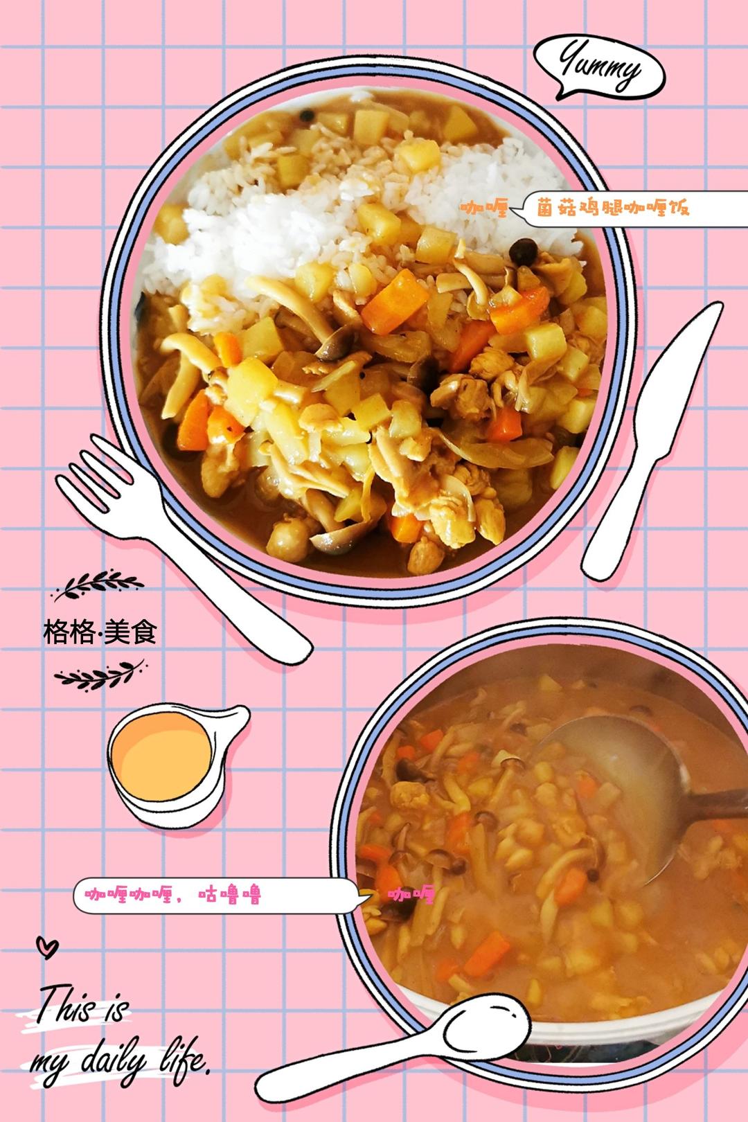 趁着猪宝宝会见同学不在家,😏🤫😉😊做他心心念念的咖喱~菌菇鸡腿咖喱饭,咖喱咖喱咕噜噜,香气充满屋。😳😭😂刚做完他就回来了...