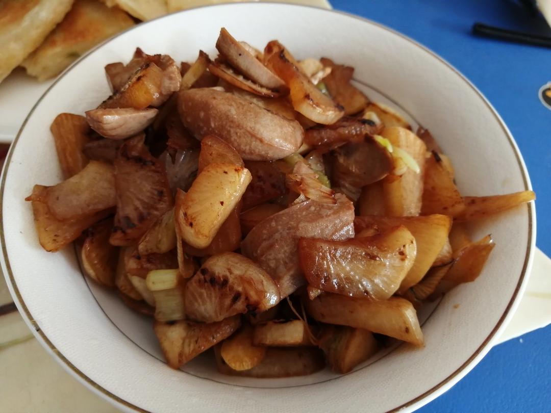 腌萝卜炒猪腰,配小米粥