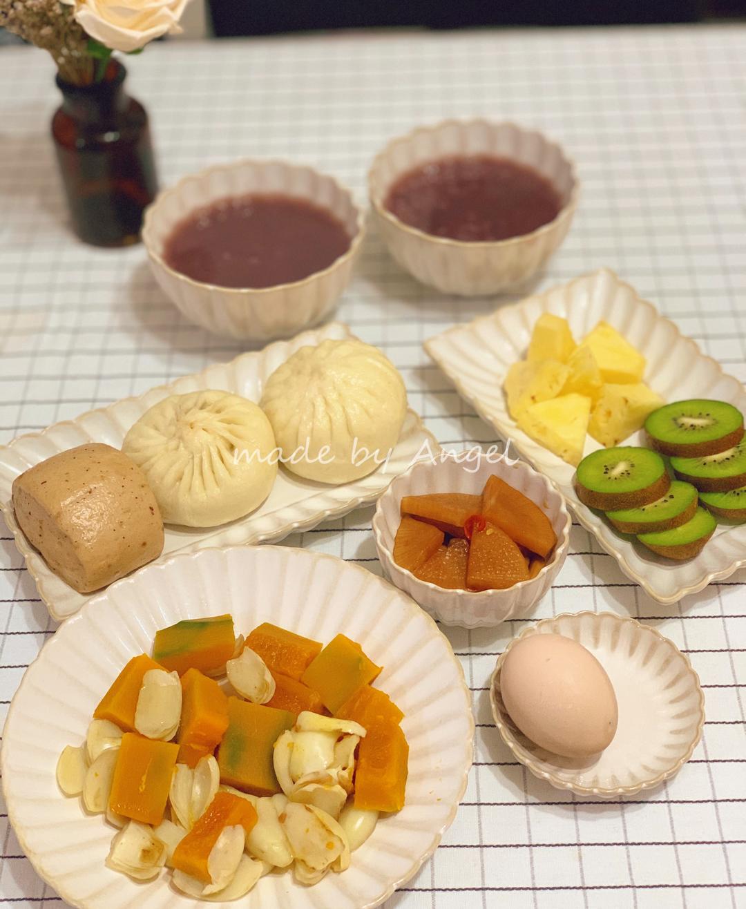 紫米粥配包子,加上糖醋萝卜,yummy