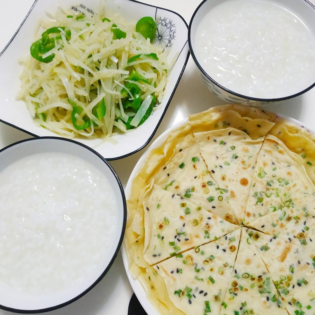 白粥+土豆丝+鸡蛋饼