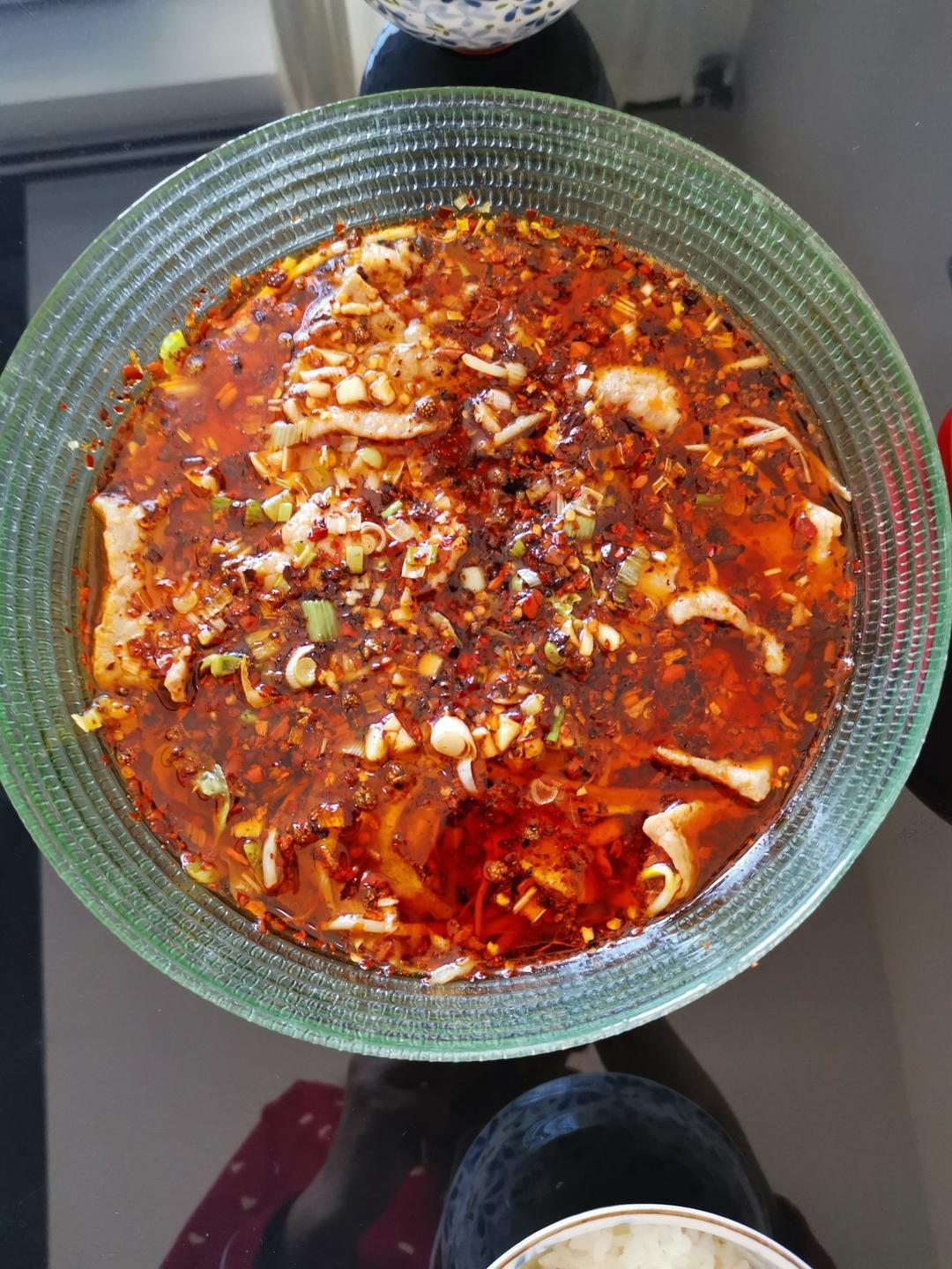 午餐水煮肉片+蒸生蚝+番茄蘑菇豆腐汤