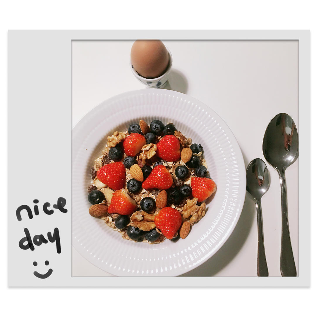 新的一天从从粗纤维,碳水化合物,不饱和脂肪,蛋白质,维他命开始😃😃