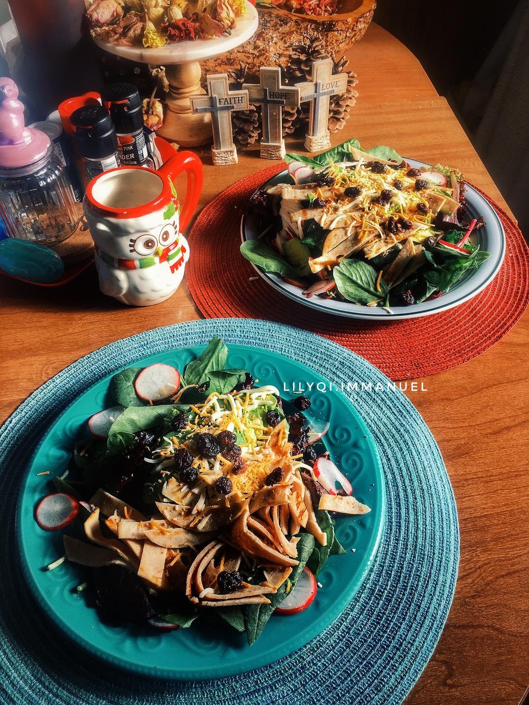 和姐姐在家午餐,今天午餐火鸡胸沙拉。其实每次吃饭吃什么都不重要。重要的是聊。当下最关心的...
