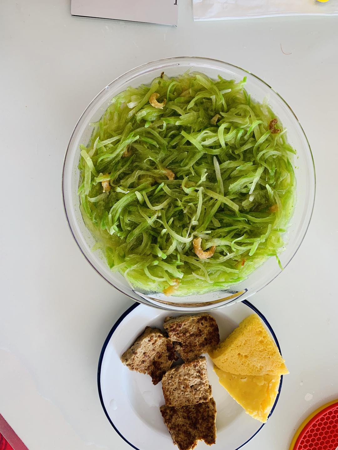 海米炖萝卜,自制午餐肉还有小发糕😃