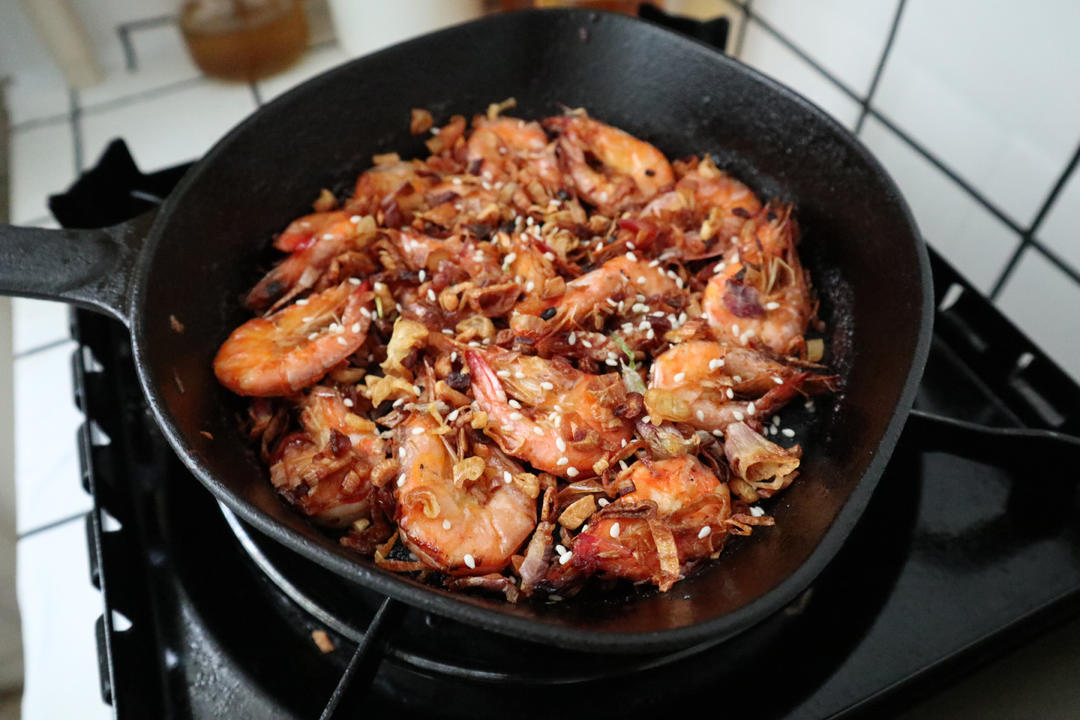 火葱头煎湛江虾