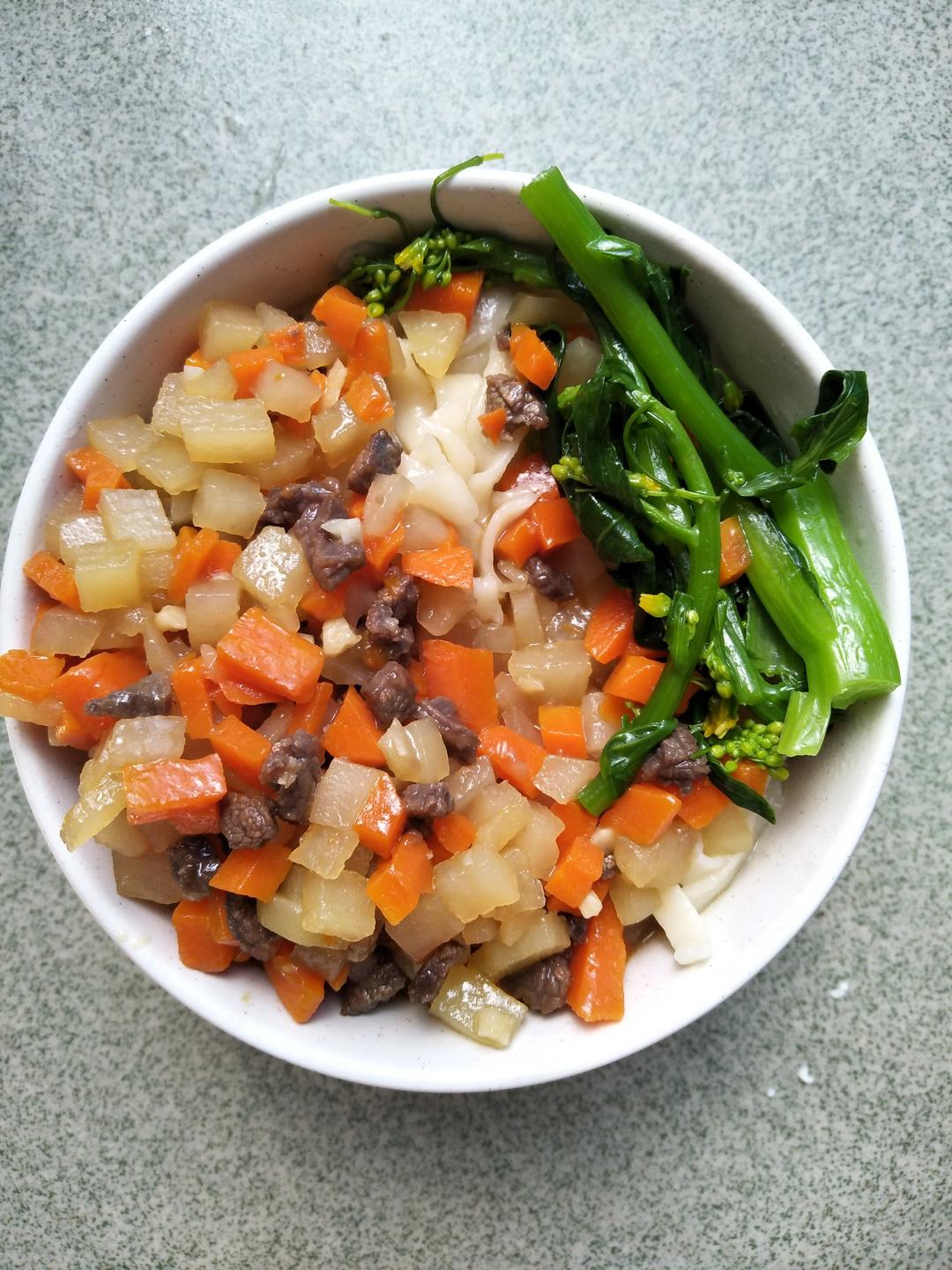 今天的午餐:牛肉炒面,鸡汤。开动了😏