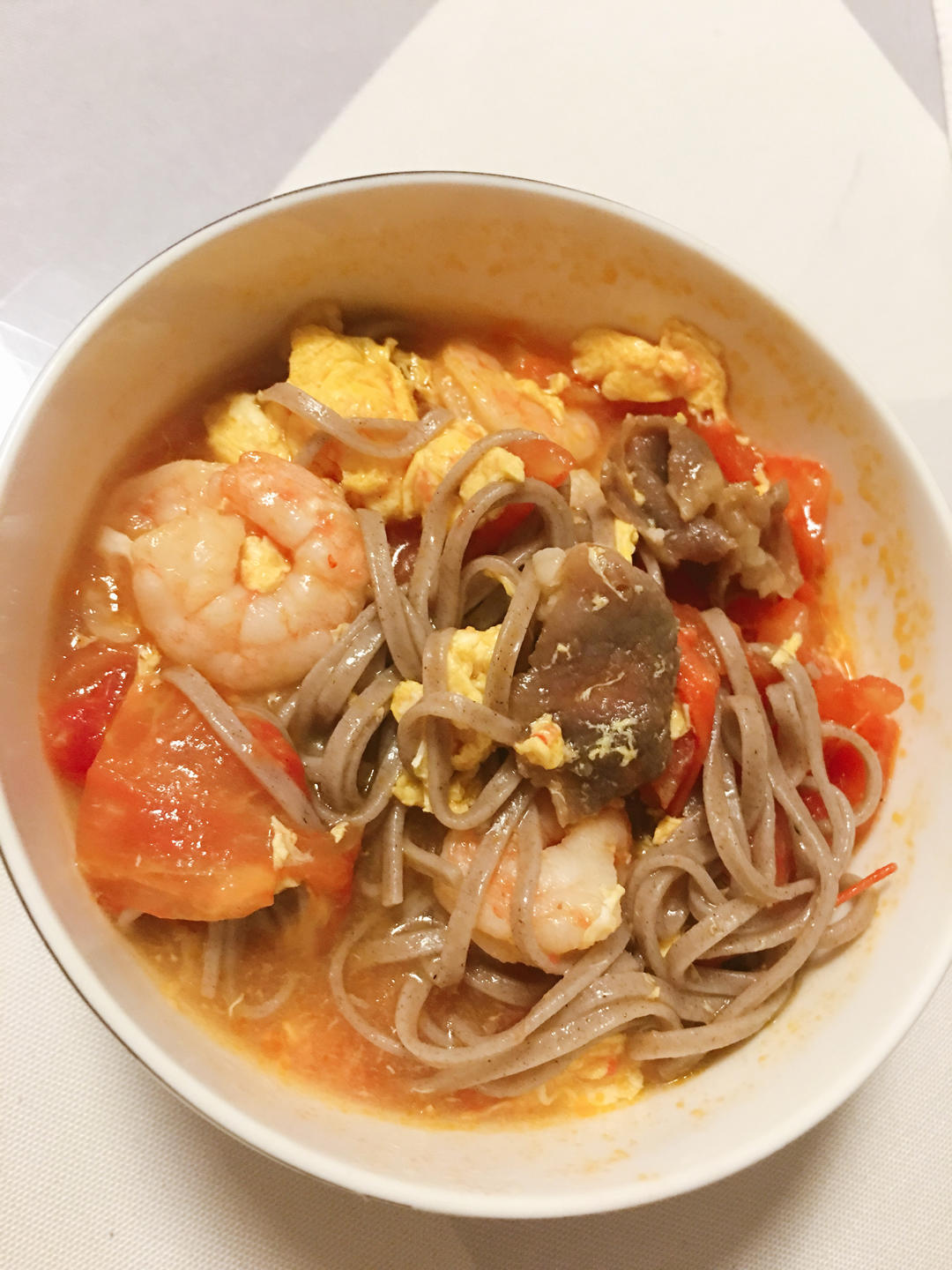 番茄肥牛虾仁荞麦面