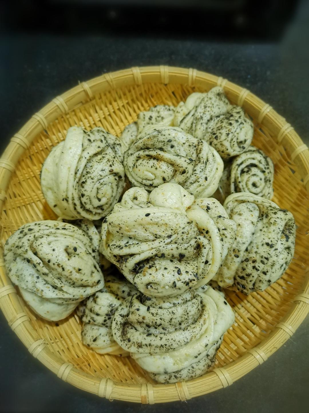 全麦黑芝麻花卷