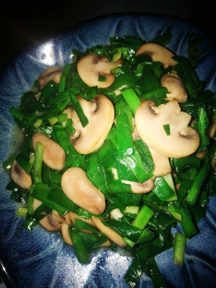 韭菜炒口蘑,味道鲜美。