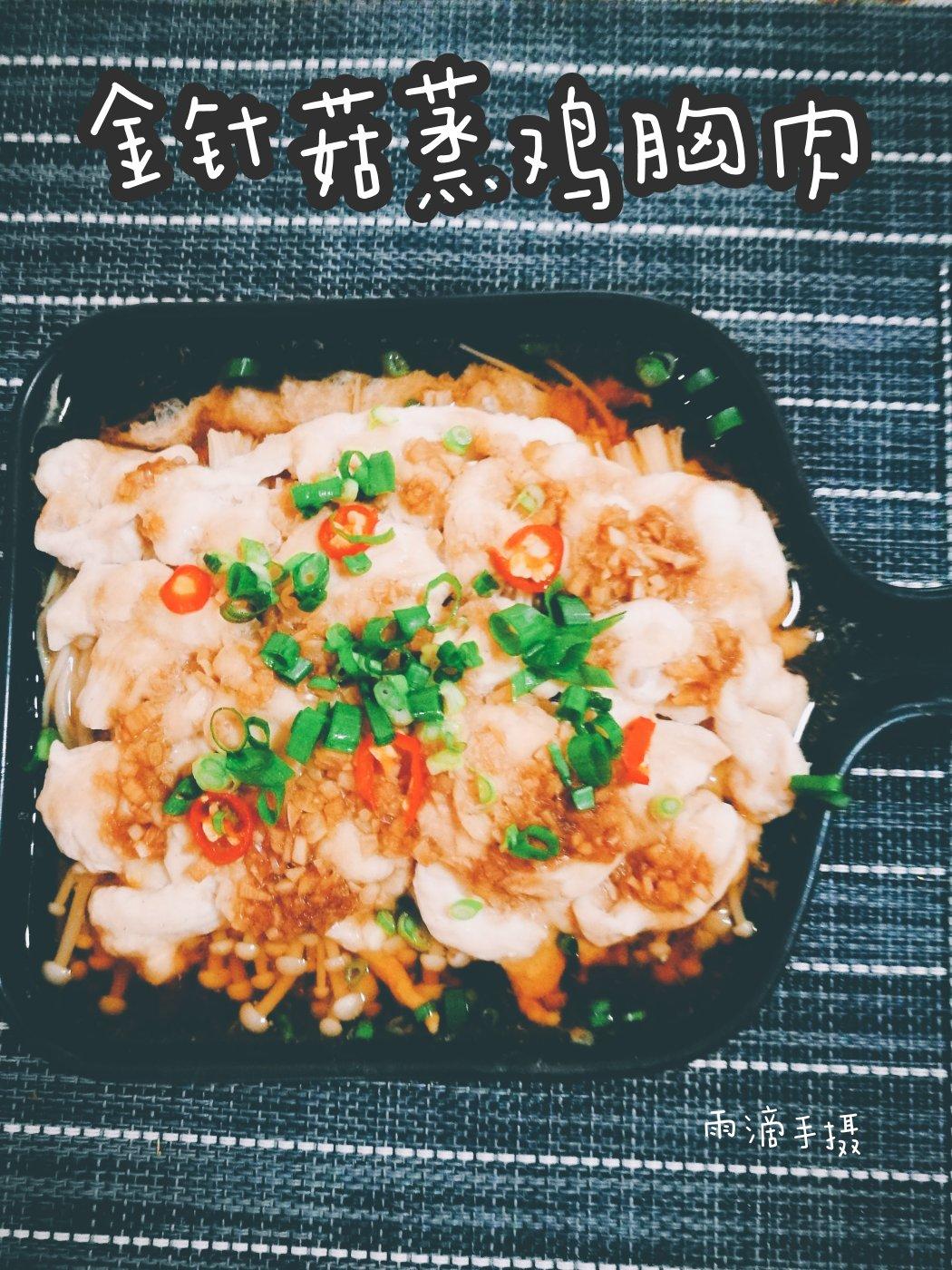 金针菇打底,和腌制好的鸡胸肉一起上锅蒸十分钟,鲜嫩美味,不用一滴油,是减肥佳品。