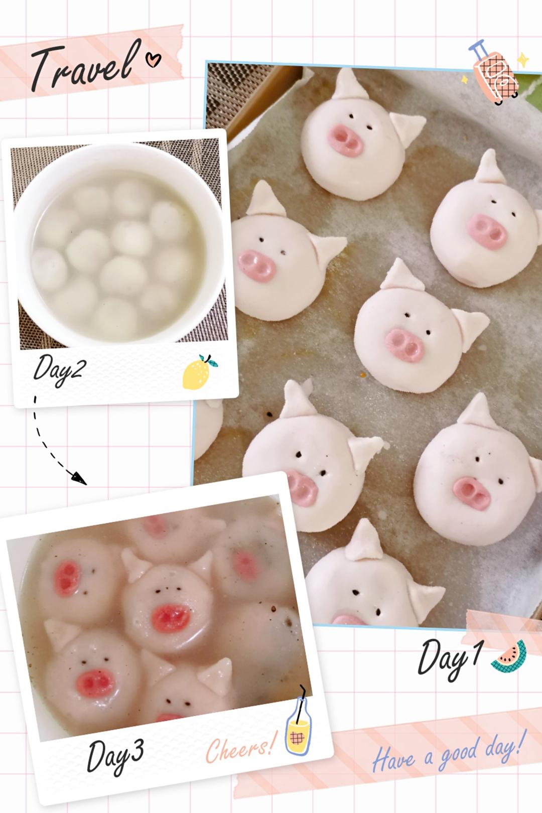 卡通包子+蒸蛋糕+水果+罐头