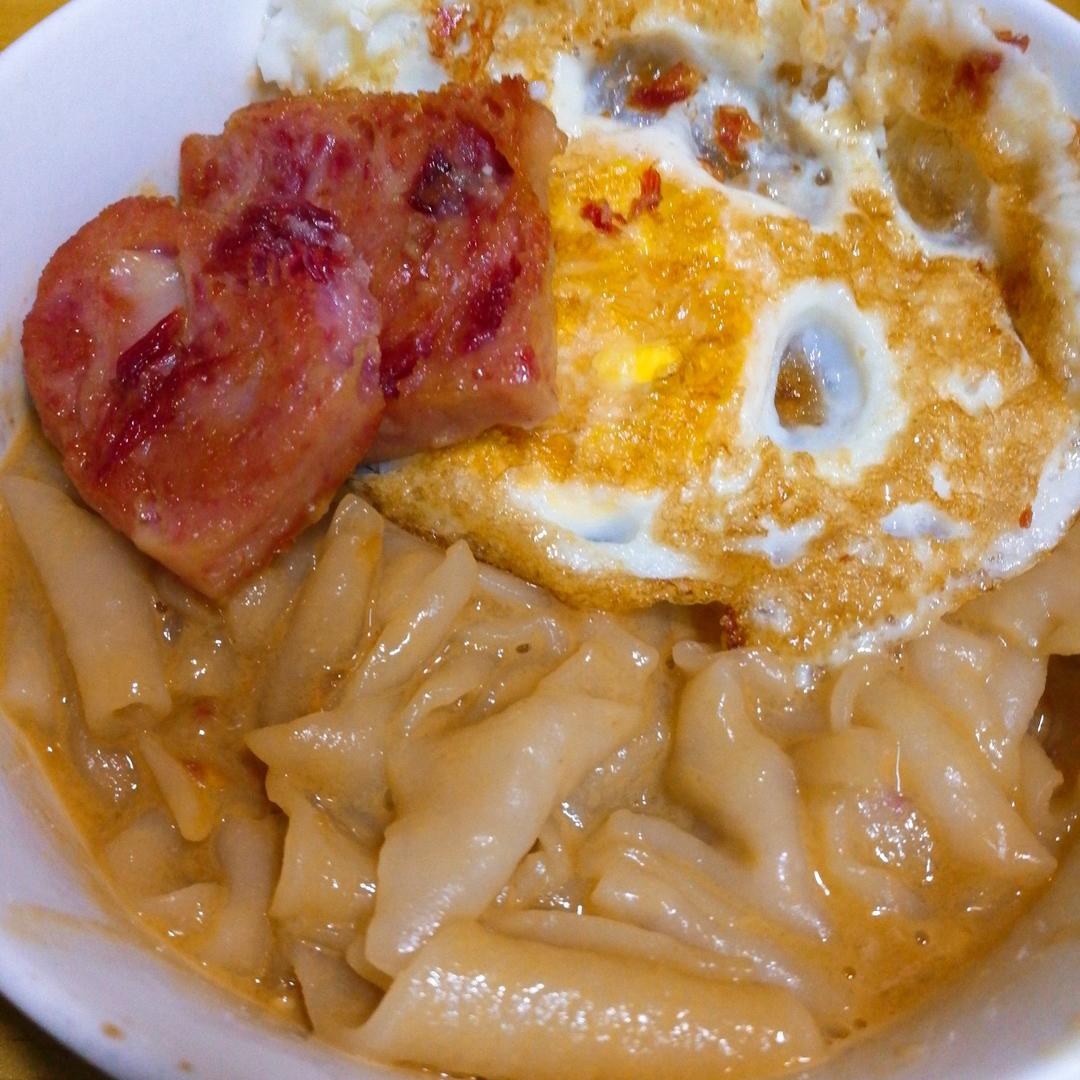 拌粿汁+荷包蛋+小白猪午餐肉