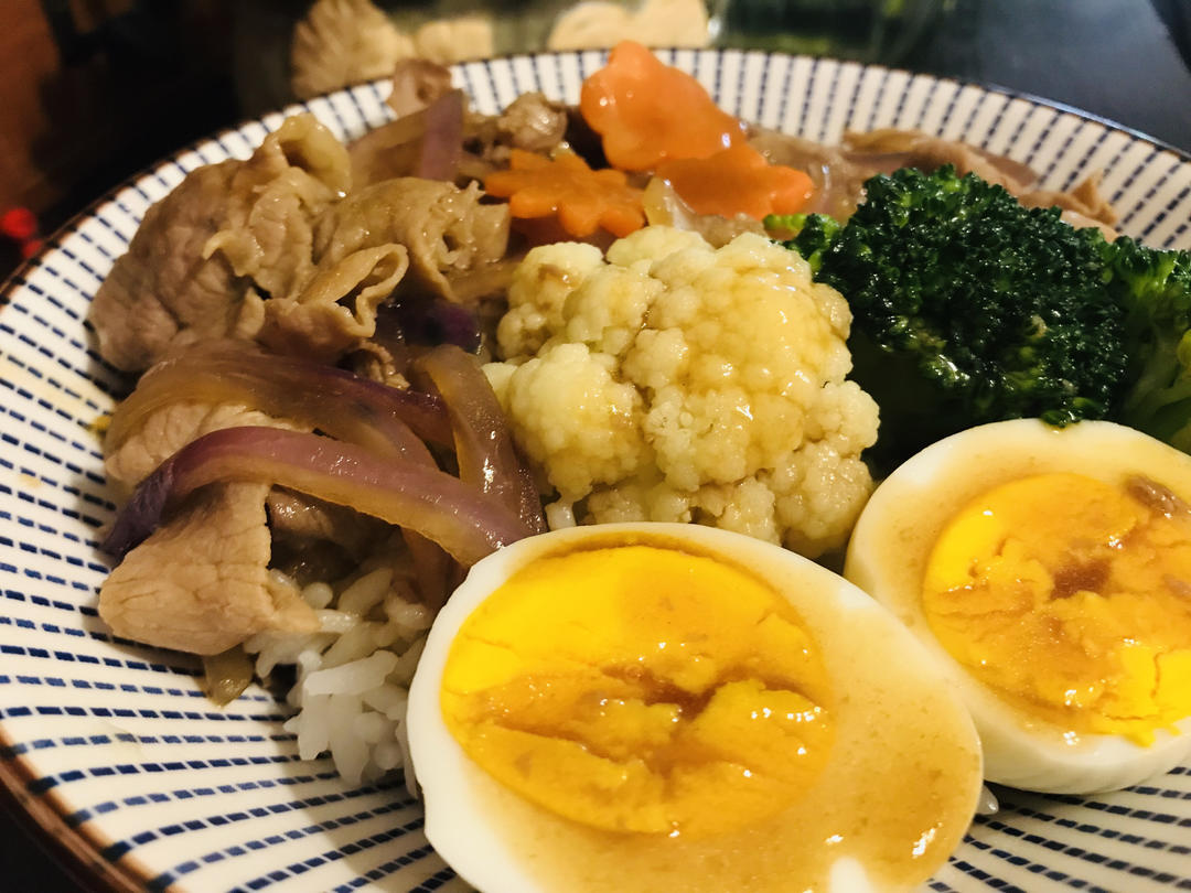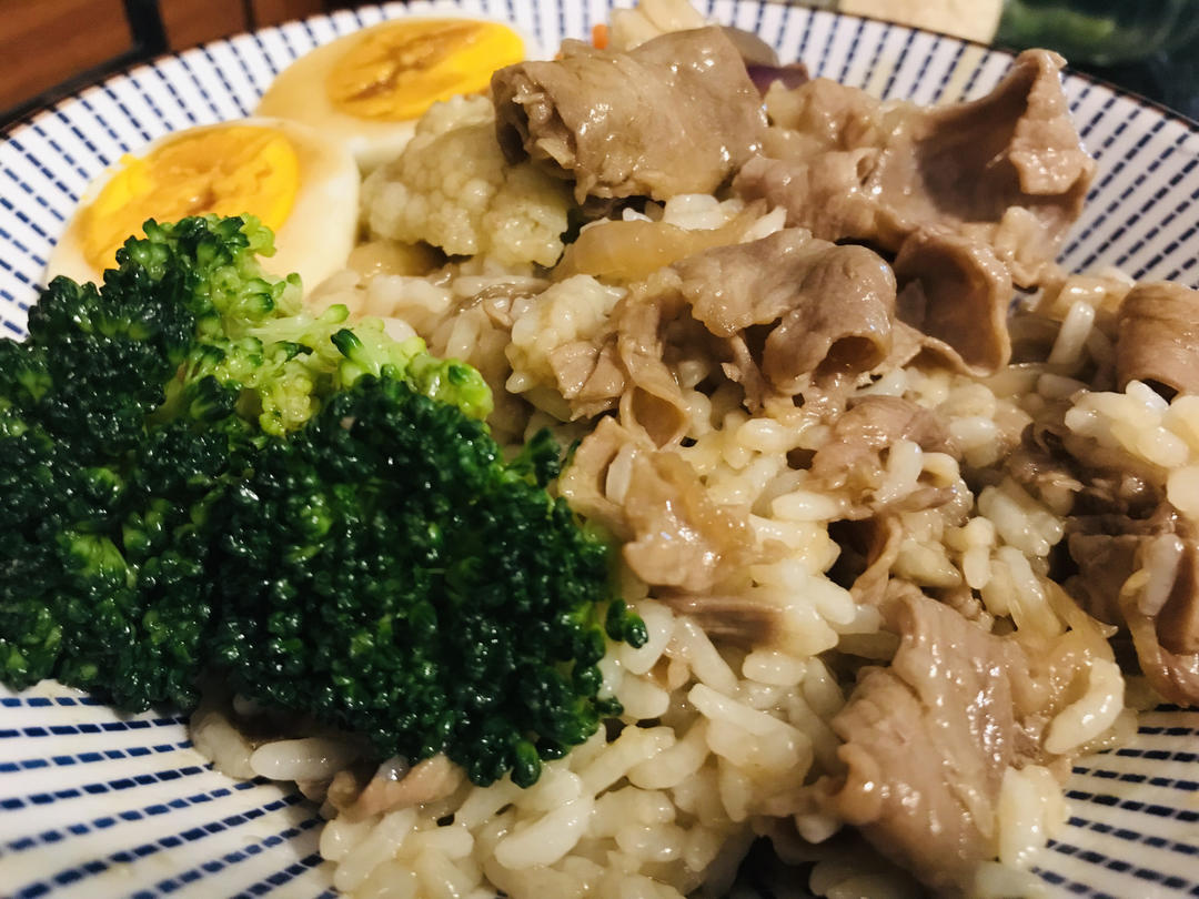 €每日早餐€:日式肥牛饭+煮鸡蛋,味噌汤,水果!