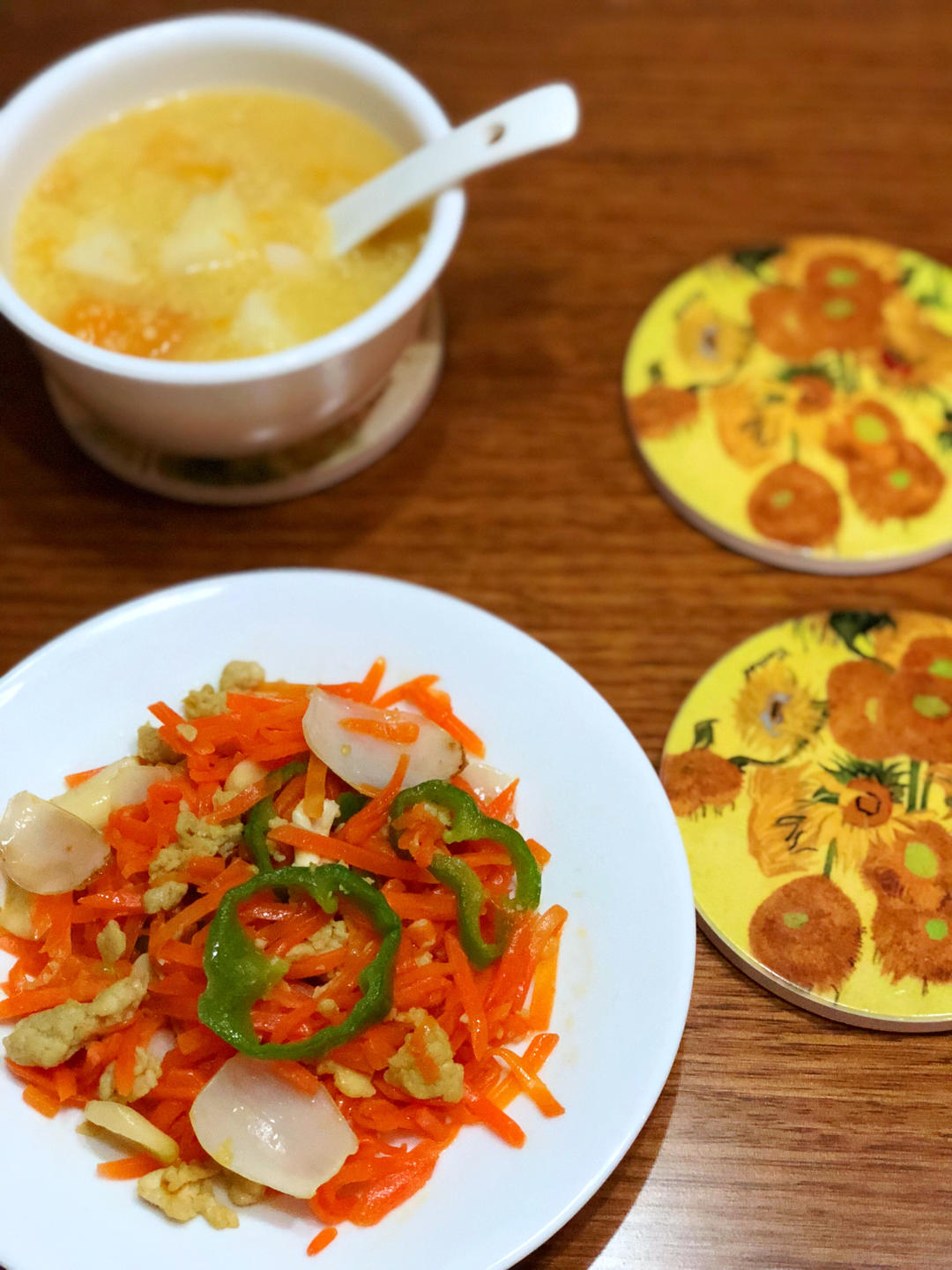 红薯山药百合小米粥,鸡蛋胡萝卜丝🥕炒百合,小雪节气暖暖的。