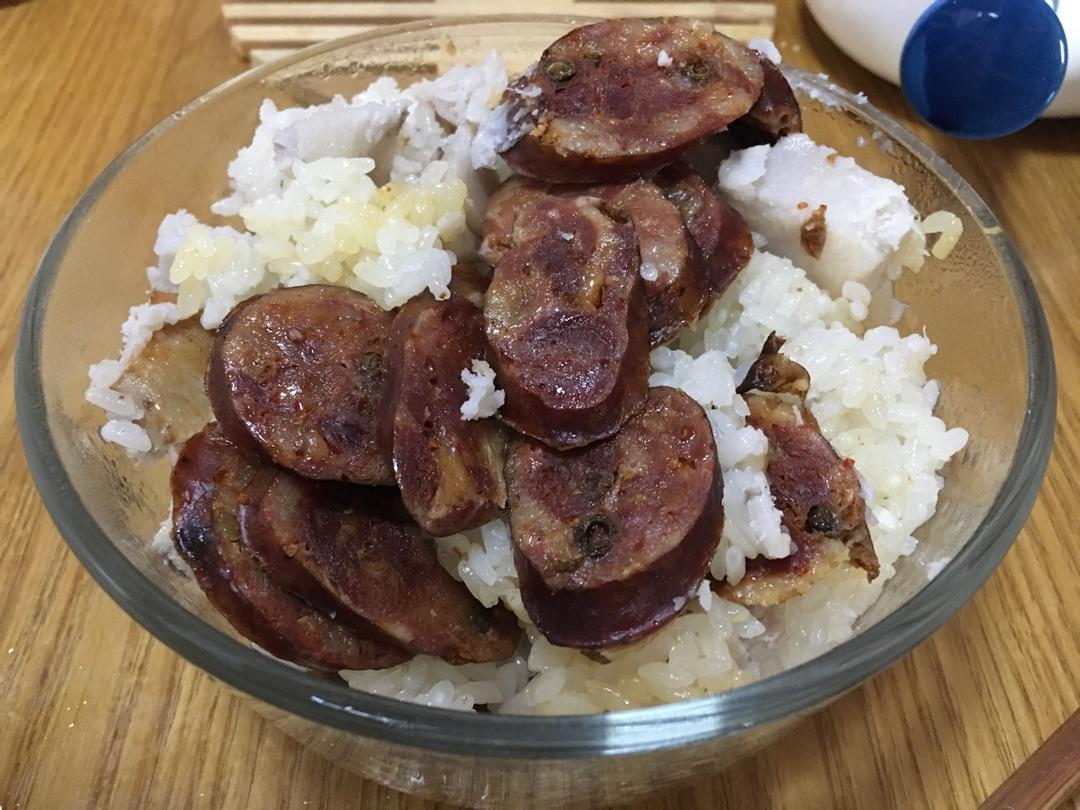 香芋糯米香肠饭,电饭煲做的,好吃!