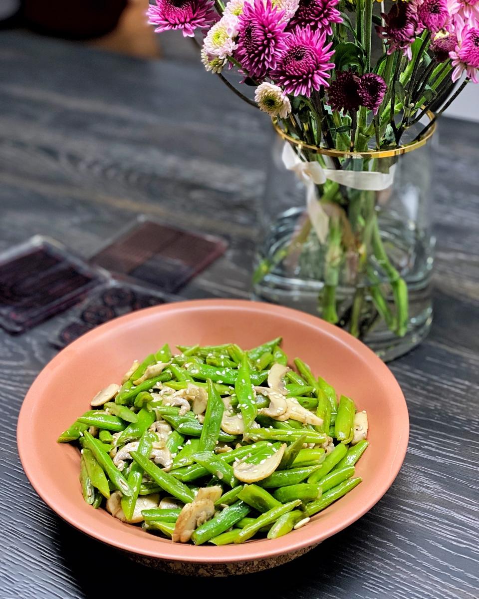 很熟版&多椒盐版,哈哈哈。300g+的四季豆、7个蘑菇。