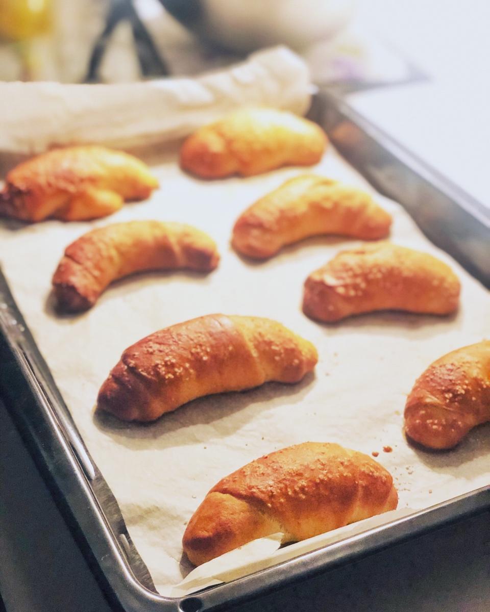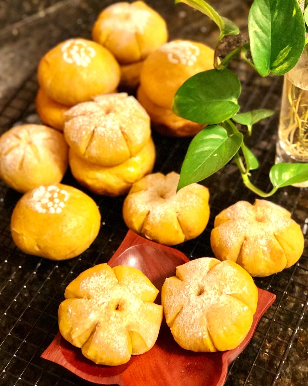 又做了一批南瓜面包当早餐,试了不同面包造型,虽然不完美,但捏面团挺好玩的。挺好的方子,做了双倍量,存量好过冬😄#早餐•2...