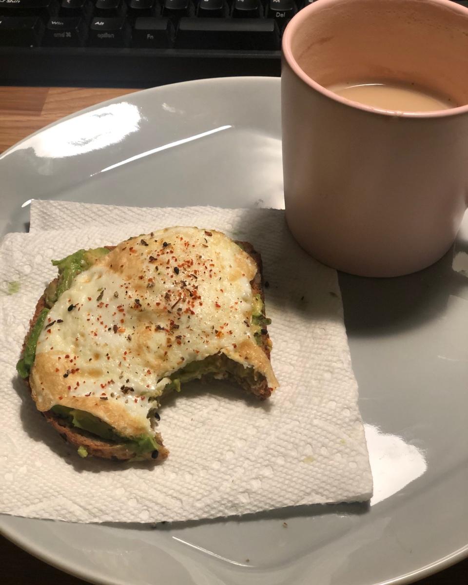 avocado toast,买了面包可以不每天都吃oatmeal了!咬了一大口才想起来要拍照!#早餐•2019年12月5...