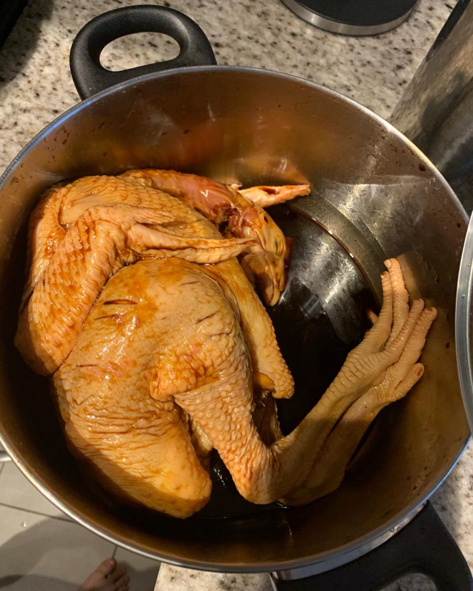 煮糖浆的时候没离火就倒了朗姆酒,一下子锅里烧起来了,刺激😂现在包好保鲜膜放冰箱里了,周一再拿出来尝尝~