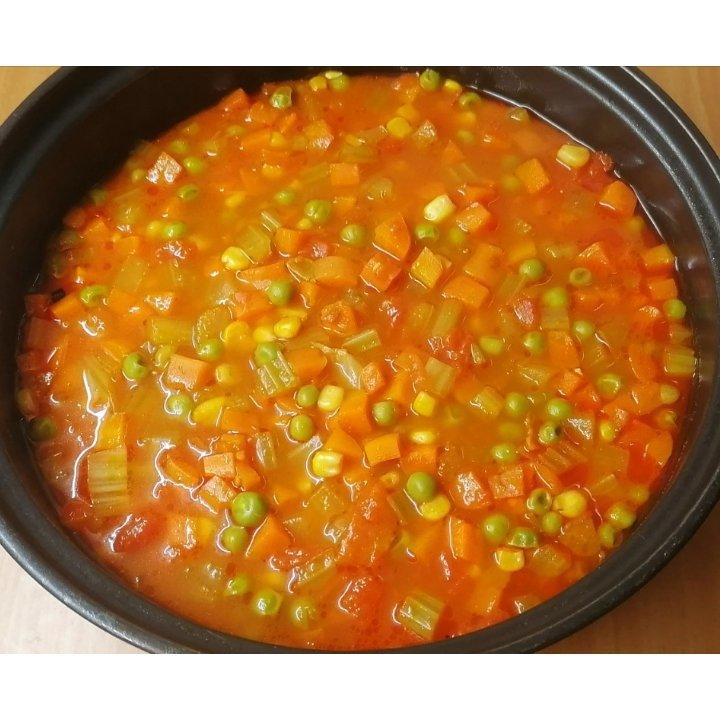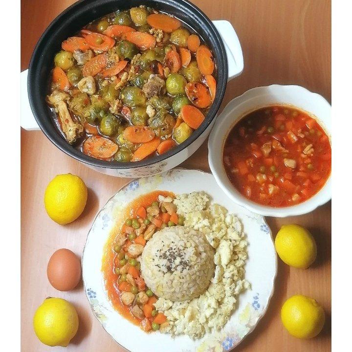 用昨天做的茄汁儿炖蔬菜拌了米饭,