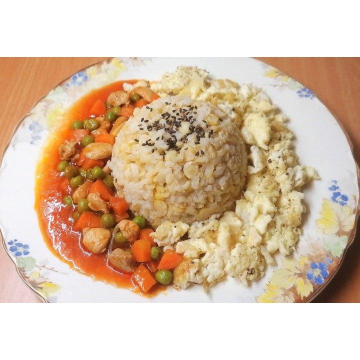 滑嫩炒蛋,黄豆糙米饭🍚,柠檬水。