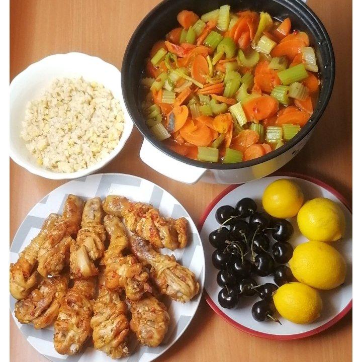 感恩节一人食大餐:麻辣烤鸡琵琶腿,水煮蔬菜,