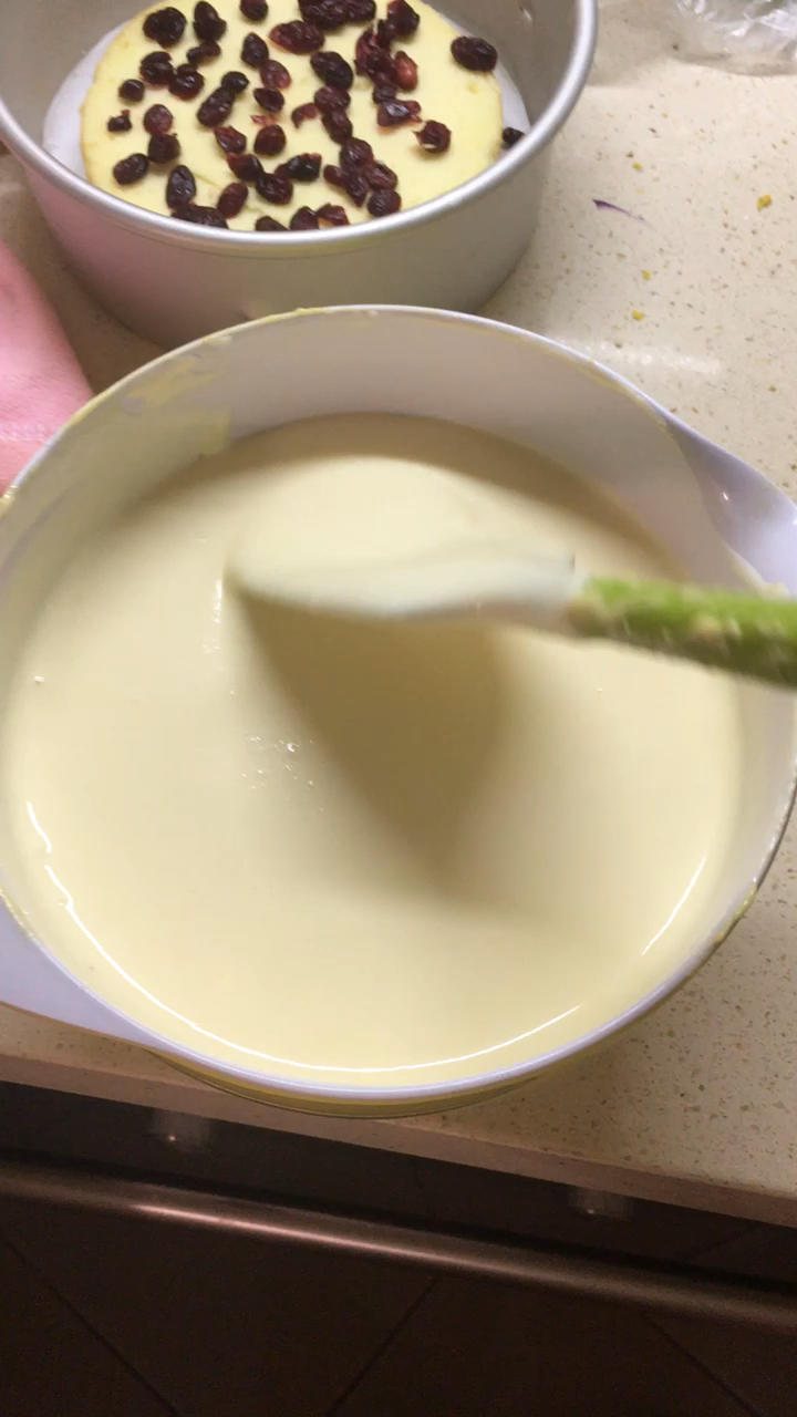 慕斯液双倍,两层蛋糕胚稍微厚一点,7寸圆模富裕一点。1份量6寸不够。