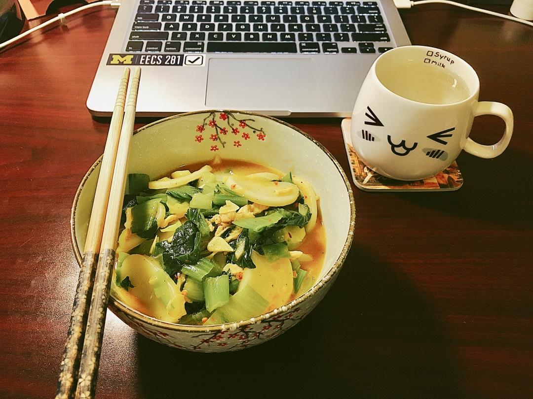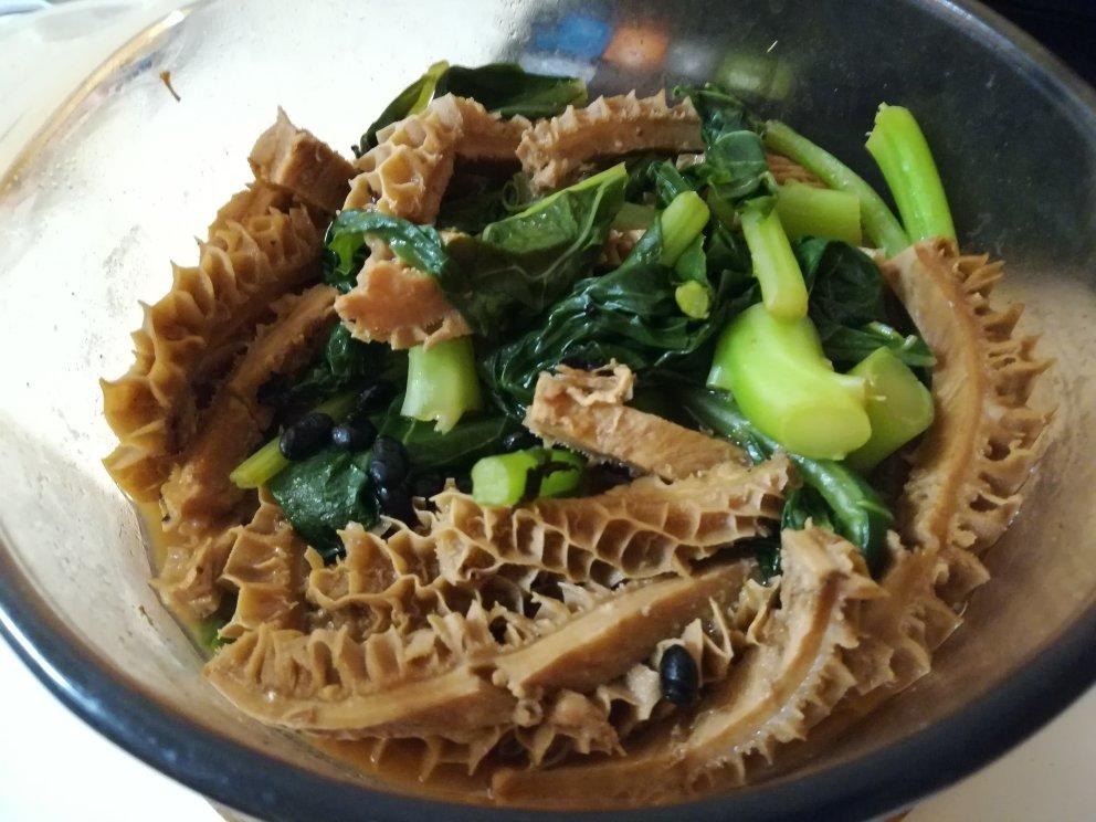 往炖牛肚里顺便放了几片菜叶,勉强算荤素搭配了吧