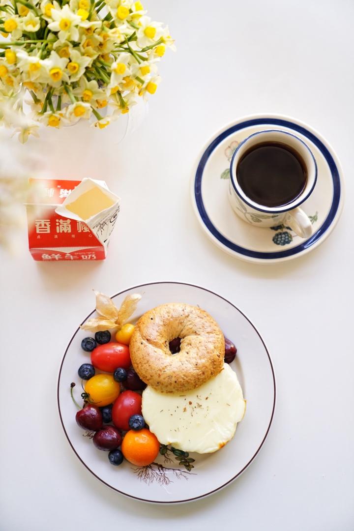 咖啡/牛奶/水果/贝果三明治