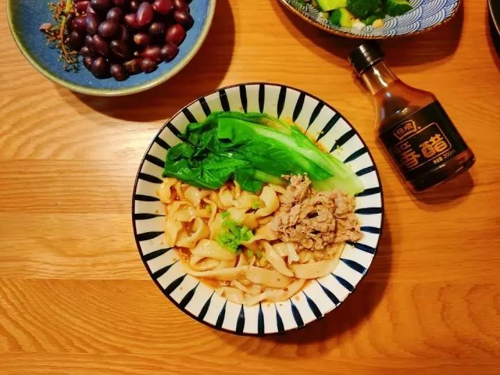 累了一天,又不想点外卖,就自己在家煮个自己做的手擀面,辣椒放的比较少,因为小米宝在北京冬天特别容易上火,所以看起来没有红...