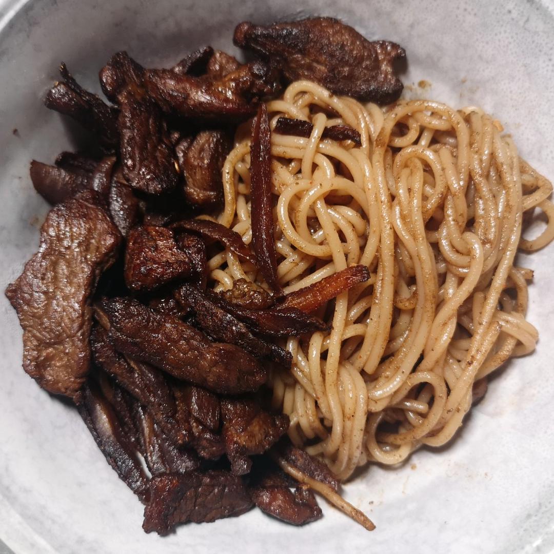胡萝卜羊肉炒米粉,紫胡萝卜加酱油炒,看起来很像烧焦_(:з」∠)_