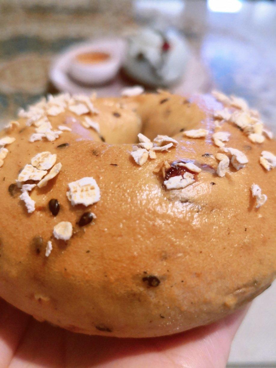 贝胖子,出炉辣😃最健康的面包,没有之一。加了蔓越莓,黑芝麻和燕麦,咸口面包,有嚼劲,趁热...