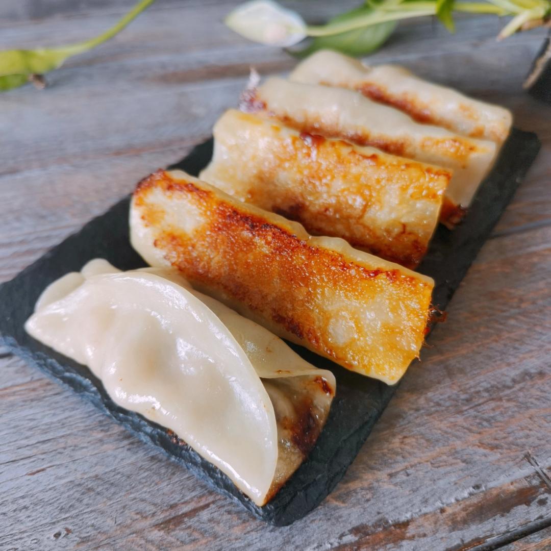 5秒弄馅,好快。三文鱼肉馅煎饺
