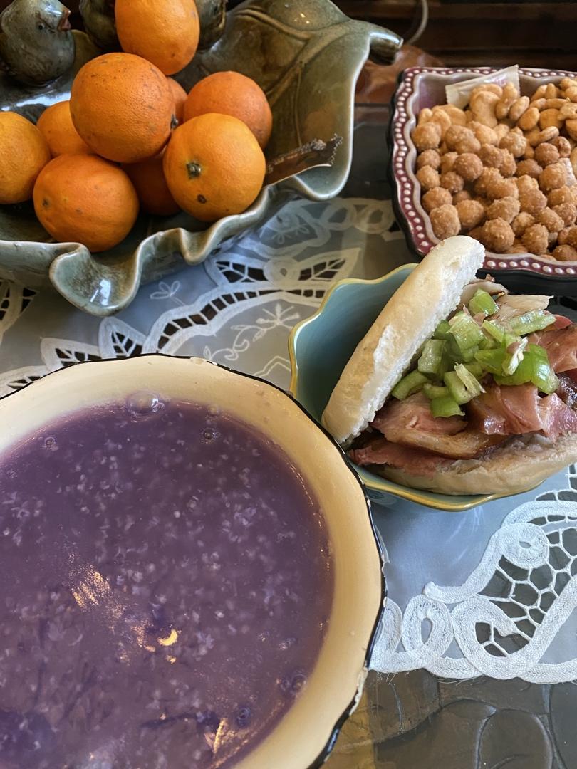 紫薯粥,肉夹馍,快手早餐