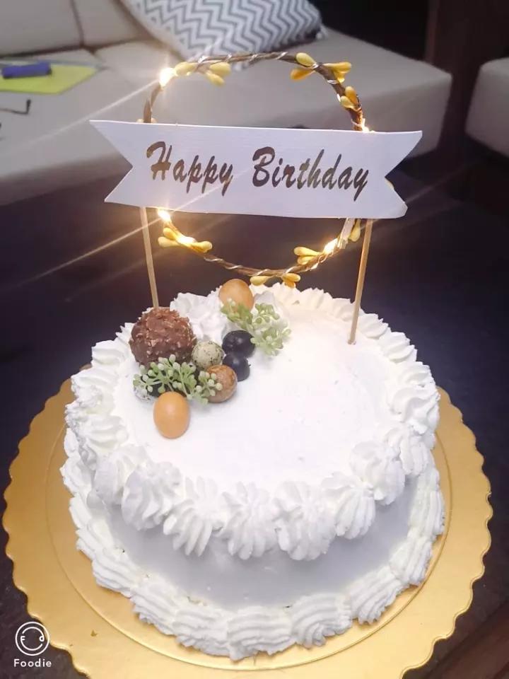 哈哈没有人生日。抹面不齐,只能裱花来凑,自己买的淡奶油就是好吃(「・ω・)「嘿 #蛋糕🥧...