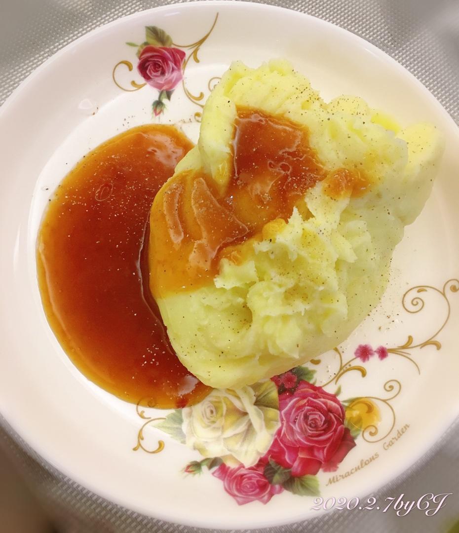 这一份土豆泥更接近KFC了。下一次做的话,我需要做得再湿一点,熬的时候胡椒粉再弄一点会更像。