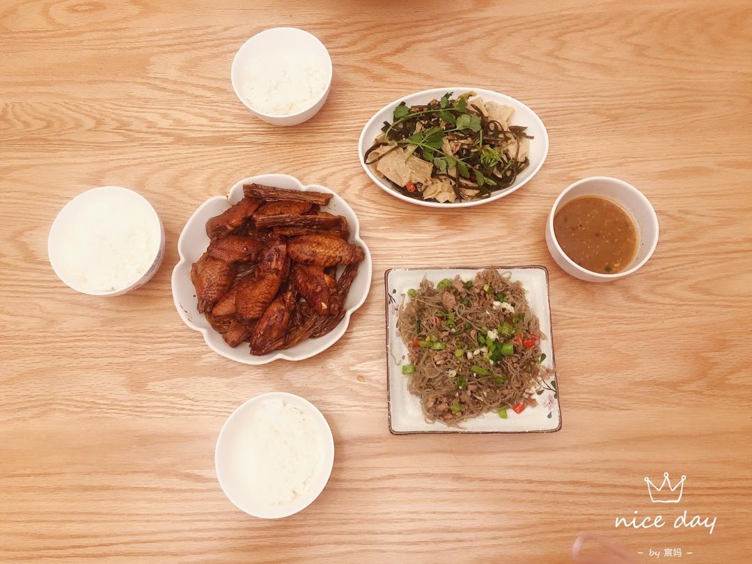卤鸡翅➕肉末粉丝➕凉拌海带丝豆腐皮