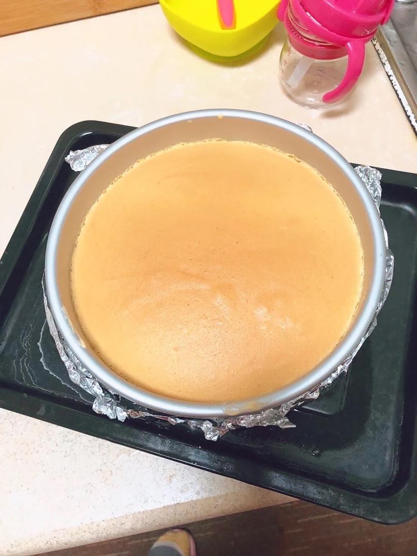 试着加100ml的淡奶油,减80克奶油奶酪,中间放芝士片。出品有点像巴斯特,哈哈,但口感又有蛋糕打发了的感觉...