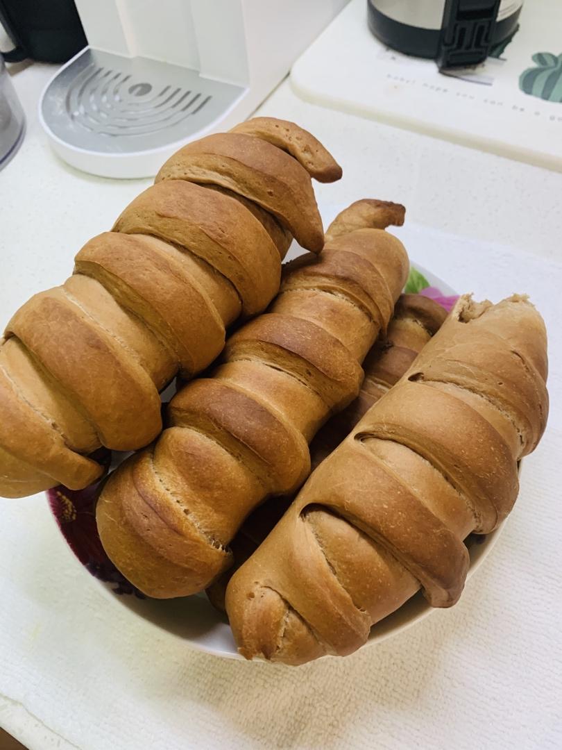 按照题主的配方,烤箱第一次发酵40分钟,然后做出形状第二次烤箱发酵20分钟,然后烤的温度是18分钟150度,还是很成功的...