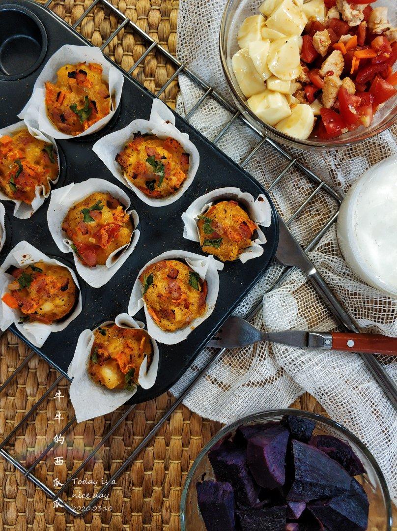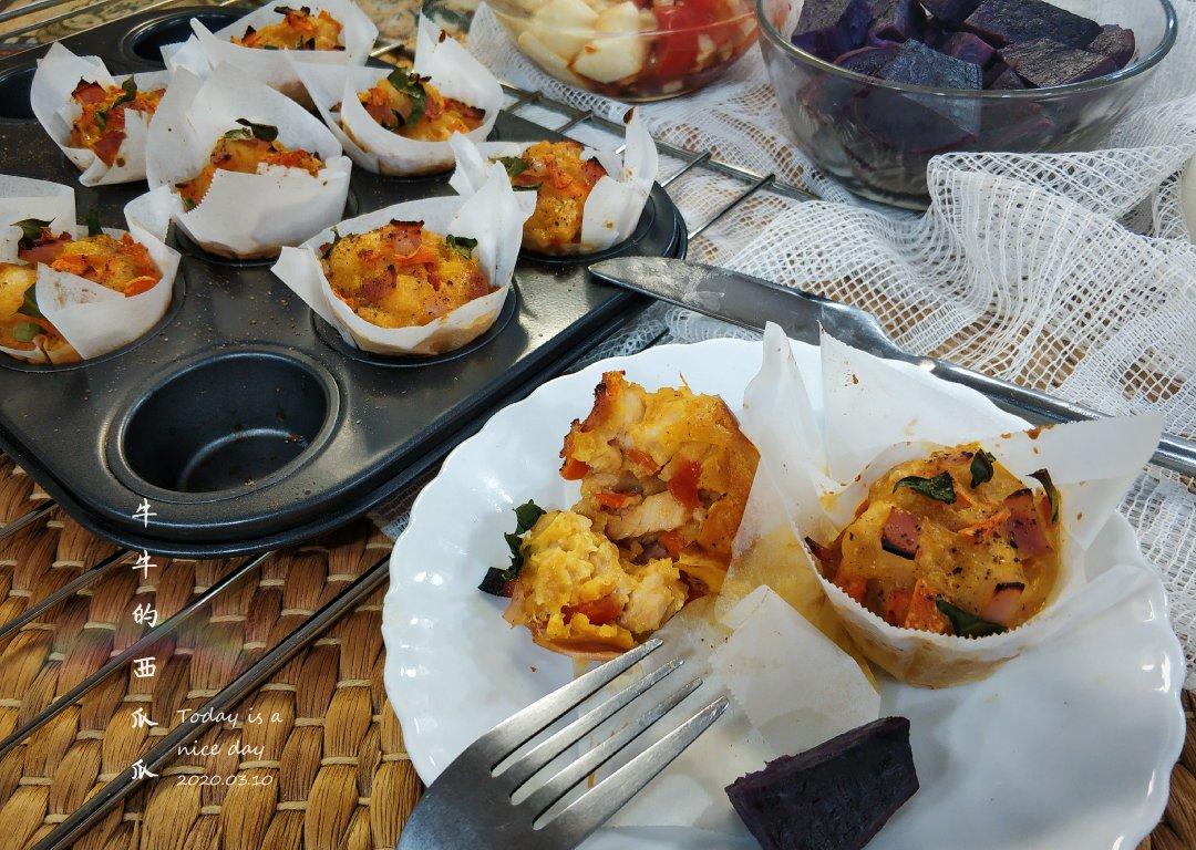 昨天睡前刷菜谱越刷越有灵感,今天就撸了这款中式口味的马芬!小小一杯肉蛋菜奶都有了!模具可自行替换蛋挞或cupcake!明...