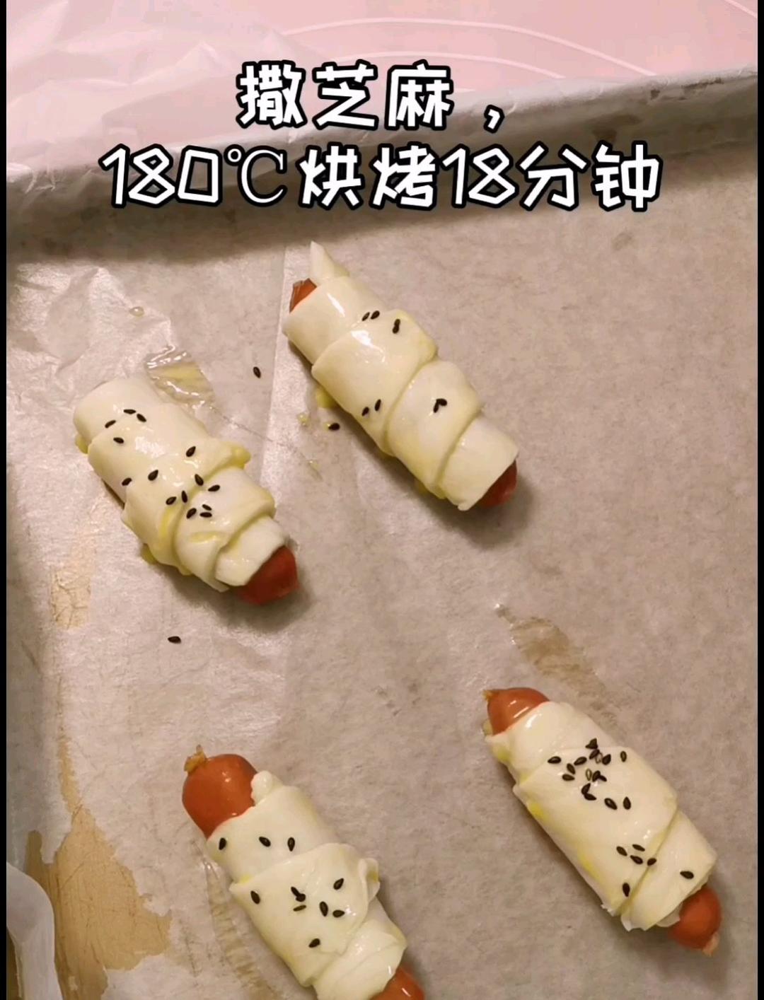 简单又好吃的一款小点心,只需要一块手抓饼和一条香肠就可以制作完成哦。