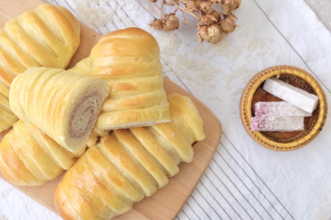 用大米面包的面团做的 夹了芋泥馅超美味~