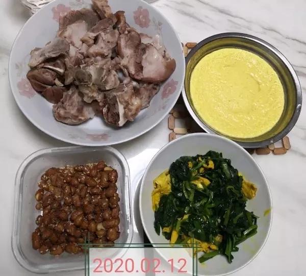 晚餐:韭芽炒蛋,腊肉西兰花,土豆胡萝卜小排汤
