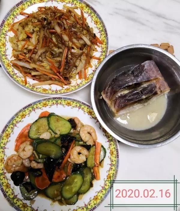 午餐:黄瓜木耳炒虾仁(放几粒鸡头米),大白菜炒粉丝,蒸咸鱼块